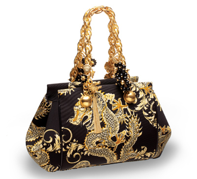 為迎接2012龍年的來臨,意大利奢侈品牌范思哲Versace特別推出了極具紀念價值的珍藏款女裝手袋,全球限量210個,并僅限于亞洲地區發售。限量版手袋以黑色為底色,金黃龍形圖案遍布整個袋身,極具氣勢。磨砂金色手挽帶綴以不同吊飾及寶石,搭配生動的霧面立體龍頭流蘇吊飾。另外,為了彰顯客人尊貴身份,每個限量版手袋內的金屬小牌均刻有“Year of Dragon 2012”與限量版編號。