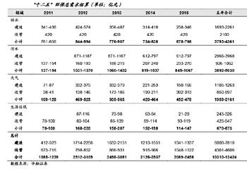 從行業來看,“十一五”期間已大力治理的領域如電力脫硫行業將轉向運營端,而“十二五”新提出的脫硝除氮的機會則集中在建造端。根據測算,電力脫硝建造、電力脫硫運營、污水處理建造的需求較大,是“十二五”環保產業的重中之重。建造端建議關注工程建造類企業,運營端則建議關注運營管理類企業。