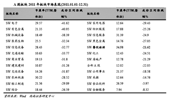 2011年有色金屬板塊表現不盡如人意,截至12月9日,申萬有色指數下跌34.23%,而同期上證綜指下跌18.84%,行業超額收益為-15.39%。部分券商認為,盡管當前有色金屬板塊依舊在調整,但觸底跡象漸顯,預計板塊全年將寬幅震蕩,從而給投資者帶來波段性操作機會。