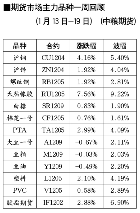 期貨市場主力品種一周回顧[2011.12.30-2012.01.05]