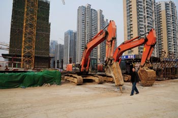 往年春節假期,各個樓盤銷售點都很熱鬧,前來看房的消費者絡繹不絕。但今年同期,眾多售樓處都是門庭冷落,不得不打出大幅促銷廣告吸引消費者。此外,多數房產中介也擔心交易冷清而延長了假期。龍年春節期間房地產市場一片冷清。圖為山東青島一在建樓盤留守人員在工地巡視。新華社發(俞方平