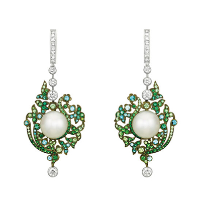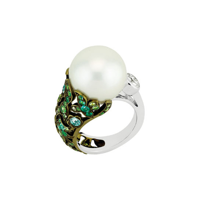 潔白珍珠在明亮陽光和青綠調的映襯下更顯生動,飽滿的球面閃耀晶瑩七彩,正是乍暖還寒,宛若一縷輕風徐徐送和,回繞在皚皚白雪下的冬日花園“Jardin