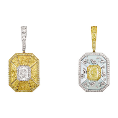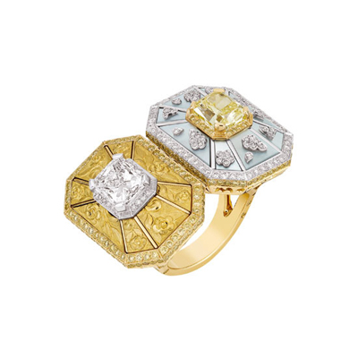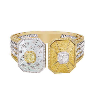 d’Automne”中白色和黃色的鉆石交互對比映襯,描繪著秋日金陽的燦爛光彩。