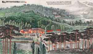 自上世紀50年代開始,隨著中國政治、社會各方面涌現出一種對革命圣地的崇拜熱情,與革命歷史相關的韶山、井岡山、延安等地,地位不斷提升。1960年傅抱石的《毛澤東同志故居》《韶山八景》參加在北京舉辦的全國美術展,最早將對革命圣地的描繪脫離寫生層面,進入主題性創作,“革命圣地山水題材”就此開始形成,這種新的山水畫類型在上個世紀60年代中期得到空前發展,成為與“毛澤東詩意山水”并行的兩大國畫題材。在此類型作品中,“韶山”是畫家描繪最多的,幾乎當時所有山水畫家都曾涉足。