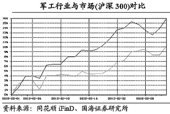 軍費增長、政策利好、資產注入、科技進步……在多重利好因素帶動下,2月份軍工行業上市公司整體走勢趨強,上漲幅度明顯大于滬深300指數。有券商預測,今年軍工板塊將迎來大年行情。