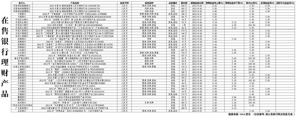 在售銀行理財產品[2012-03-16]