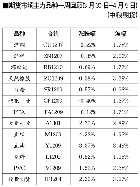 期貨市場主力品種一周回顧[3月30日-4月5日]
