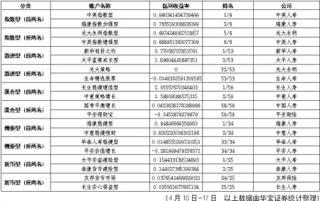 根據華寶證券統計數據,4月10日-4月17日,投連險各分類賬戶表現可圈可點,所有賬戶取得0.48%的平均收益,大多數賬戶均實現正收益,關注度較高的激進型賬戶取得0.70%的平均收益,略低于滬深300指數漲幅。
