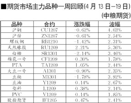 期貨市場主力品種一周回顧[4月13日-19日]