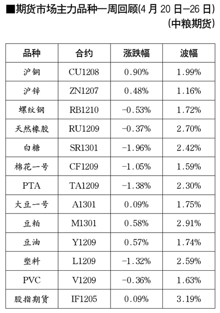期貨市場主力品種一周回顧[4月20日-26日]