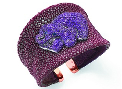 Gruosi萌生將稀有的珍珠魚皮和名貴的鉆石珠寶相結合的想法,并成功將珍珠魚皮逐打造成品牌經典標志之一;2005年,運用黃金調色工藝,一種如焦糖般甜蜜且彌漫著高級金屬光澤感的金黃色——Browny