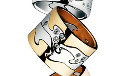 Fusion系列以指環開始。幾個精美別致的小金環巧妙靈動相交相融,契合成獨特的設計。這前所未有、巧奪天工的設計融合出搭配的無盡可能,情定無限真愛。無瑕璀燦的美鉆和層層耀目的黃金幻化為情侶間的專屬印記,拼湊著情路上的點滴熾熱,協奏出醉人的浪漫故事,同時亦展現與眾不同的個人風格。