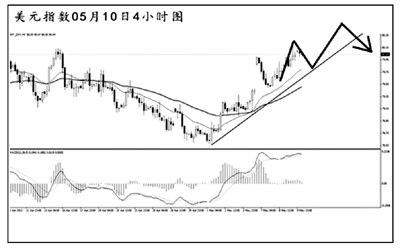 與非美貨幣疲弱的走勢相對應,美元短線的反彈勢頭保持良好,從圖形上看,目前價格正在挑戰80.15一線的阻力,從日線圖上看,美元指數仍處于震蕩的走勢之中。短線形成一條上升趨勢線,支撐在79.75一線,MACD發生了角度明顯的頂背離信號。預計美元指數面臨一定的下調壓力,但整體的上行趨勢不變。