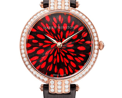 Saunier,經過精挑細選,花費至少4至7個小時的工時完成。限量制作8只,暗喻幸運數字8,共鑲嵌67顆美鉆(1.4克拉),搭配深紅色絹帶。