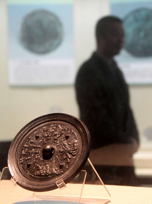 江蘇知名企業家陳鳳九珍藏歷代精品銅鏡入藏東吳博物館。包括齊家文化、春秋戰國時期、漢晉時期以及唐宋時期的近千件歷代銅鏡精品向社會公眾亮相。據介紹,企業家民間珍藏歷代銅鏡精品入藏國家級經濟開發區所屬博物館,推動區域文化產業發展尚屬首次。記者 汪永基/攝 |