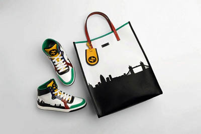 無論是鞋款還是包包均選用了上等皮革制造,設計師特別以倫敦的黎明天際線為圖案,加上對比度強烈的橘黃、嫩綠、棗紅和靛藍配件,五種取自奧運五環的色彩組成了最新的顏色混搭。同時推出的還有一款Gucci