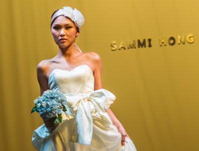“Sammi Hong2013春夏婚紗系列”發布會日前在上海東華大學舉行,展示了由東華大學在校學生設計制作的60件婚紗禮服,作品風格溫婉而細膩,顯示了學生們的才華與創意。圖為模特在展示婚紗禮服作品。