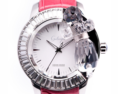 是次系列以瑞士石英表芯打造,再加上藍寶石防反光表面及三十米的防水性能完美結合,配搭4款不同顏色「黑色、淺籃色、白色及粉紅色」的真皮表帶,表現出時尚優雅的藝術格調,仿如帶著小狗探索不同色彩的夢想國度;Galtiscopio