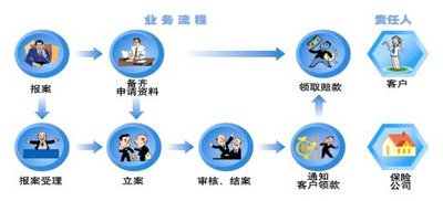 1、理賠流程圖示:客戶可通過該圖了解理賠的基本步驟和流程,清楚理賠處理的進展。