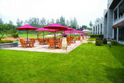 東方紅是個酒窖,但不僅僅是喝酒的地方,比如還可以吃飯,并且是坐在有山有水有草地的戶外餐桌上吃飯。遠望可看到通惠河,近看有花花鳥鳥在整個會所的空地上玩耍,一派世外桃源的感覺。