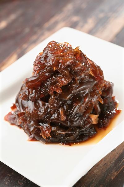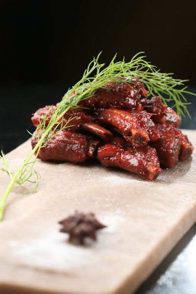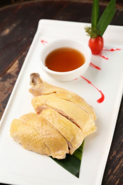 如果是喜歡魚蝦鮮腥那一口的人,滿可以大著膽子嘗試一下紹興蝦油雞。雞肉選用走地三黃雞,在胡椒、姜水和凈水里面三浸三泡,最后封油,油潤的雞皮和嫩滑的雞肉入口鮮美,但是配這個酒,用的一定要是小蝦米發酵了30天沁出來的蝦油,雷司令的熱帶水果和蜂蜜味與蝦油重重的咸蝦味互相呼應,而甜潤的口感讓雞肉柔嫩的質地越發突出。