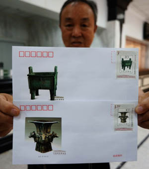 為迎接7月9日中國國家博物館建館100周年紀念日,中國郵政正式發行“國家博物館”票中票特種郵票一套2枚,名為:館藏文物—尊、館藏文物—鼎;面值分別為:1.20元、3元。