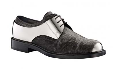 Louis Vuitton(路易威登)近年在女裝方面屢作大膽嘗試,但男裝方面還是被認為態度保守——先看看最新推出的2012秋冬男裝皮鞋,或者你會對Louis Vuitton的男裝設計師有所改觀。 鞋款帶著流暢而優雅的流線型鞋身,鞋跟、綁帶和鞋頭處裝飾著澄亮的金色金屬,配上順滑的皮革和木紋隱約可見的鞋底,手工方面毫無瑕疵,宛如藝術品一樣令人一見傾心。如若覺得皮革版不夠大膽,還可以嘗試一下皮毛版本,相信會為你的Party之夜增添一份狂野。