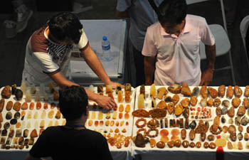 8月13日至14日,最新一期黃龍玉公盤交易在龍陵縣舉行。記者實地走訪發現,隨著大量游資撤離,曾經炙手可熱的黃龍玉正遭遇市場遇冷的考驗!爸械投水a品價格降了三成左右,銷售量也少了四成,全部家當就換來了這堆石頭,真是進退兩難!饼埩昕h黃龍玉交易市場的玉石商人林新喜無奈地說。