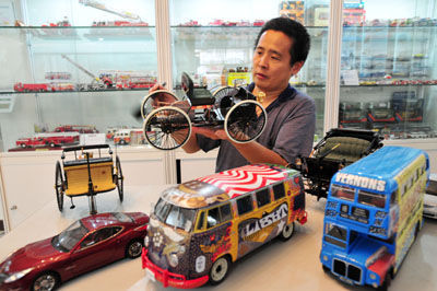 日前,位于天津河東區中山門西里的天津市名車苑汽車文化博物館正式對外開放。該館是天津市開在家庭里的民辦市級博物館,館長楊國發將自己家打造成汽車博物館,除生活必須空間外房間里擺滿汽車模型及汽車文化周邊產品。據了解,楊國發30年來收藏汽車模型達3000余件,明信片、牌照等汽車文化周邊產品1000余件。觀眾到此參觀可從汽車模型中感受到世界汽車發展史。新華社發