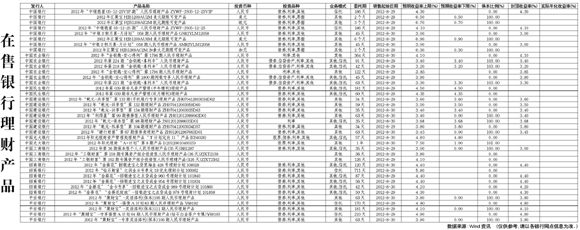 在售銀行理財產品[2012-08-03]