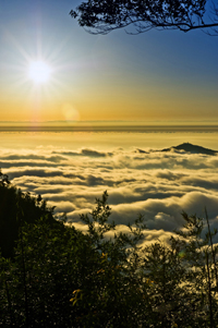 日出或薄暮天氣晴朗而有浮云時,阿里山經常出現景色壯麗的云海。登上山頂平臺,放眼遠眺,白云從山谷涌起,迎風飄蕩,時而如汪洋一片,淹沒千山萬嶺,露在云海上的峰類、樹木好像一座座浮嶼;時而如大地鋪絮,足下白茫茫一片;時而如山谷堆雪,林海中山頭若隱若現,頗似海市蜃樓。若是晴天,落日的萬道金光照射在云海上,閃耀出千萬種色彩,茶色、杏黃、寶藍、艷紅、碧綠等變幻無窮,更顯神秘。