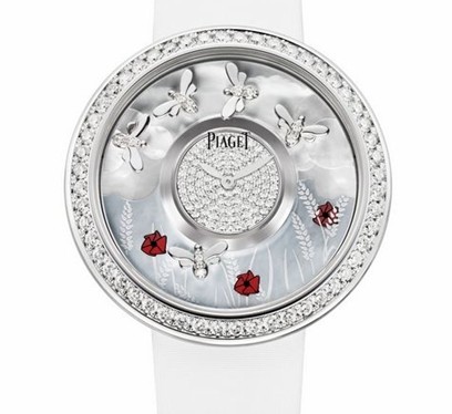 Perignon,竟然還能飄出細密的泡沫,味道平和,很好入口,一片緋紅很快從杯子移到臉龐上。這個時節,你就該戴上鑲有共重2克拉的188顆美鉆的“夏”,讓我欣賞盤上小蜜蜂在飛旋。蔚藍跟乳白的珠貝背景,表現著朗日高懸?窗,有一只小蜜蜂嘴饞了,飛到大紅花與麥穗叢中。夏天有麥穗?幻想是沒有界限的。庭院對面的房間開了,也許出門的是這里的老住客毛姆呢。