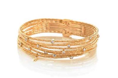 朝陽手鐲將華洛芙(Wellendorff)的經典金絲編花工藝重新定義,在每條金繩上都增添一道額外的工序,壓制出一個個細微的凹痕,匯聚并折射出耀眼光線。17顆鉆石被巧妙隨意地鑲嵌在黃金手鏈。具有專利的18K金鉤扣,通過向內折疊的設計,隱藏在手鏈之下,安全牢固的設計可讓佩戴者不用擔心日常佩戴時的拉伸和磨練,加上極具象征性的W鉆石標記,使這款朝陽手鐲成為不可多得的杰作。