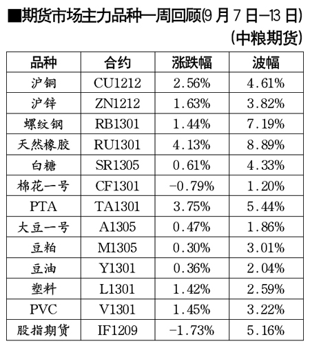 期貨市場主力品種一周回顧[9月7日-13日]