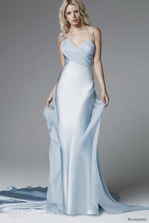 Blumarine(藍色情人)發布最新2013年度新款婚紗系列,本季 Blumarine 主打淺水藍色系婚紗,延續品牌喜愛的高腰蝴蝶結設計風格,加入更多蕾絲設計,清新靚麗。