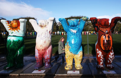 為紀念巴黎和柏林締結友好城市25周年,140座“聯合巴迪熊”12日亮相巴黎埃菲爾鐵塔下的戰神廣場。色彩繽紛的“巴迪熊”,高2米,手牽手排成兩行矗立于戰神廣場。每只“巴迪熊”都代表一個聯合國承認的國家,并由每個國家的藝術家為自己的國家進行設計制作。從2002年起,“聯合巴迪熊”已經在全球25個城市舉行了巡展,其中包括中國香港,并在巡展所到的每一個城市舉行相關的募捐和拍賣活動。目前已為聯合國兒童基金及當地兒童保護組織籌得捐款190萬歐元。