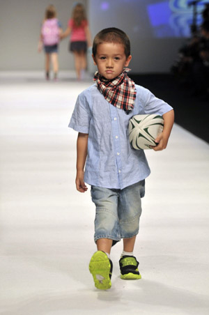 在“2013上海時裝周”的童裝發布會中,小模特憨態可掬的表演引發觀眾陣陣掌聲和歡呼,成為時裝周中的一個亮點。新華社發