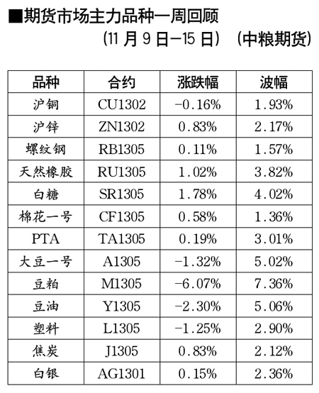 期貨市場主力品種一周回顧[11月9日-15日]