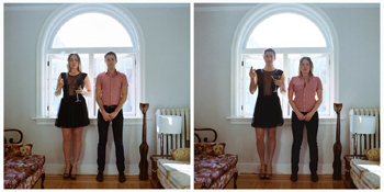 你試過女扮男裝/男扮女裝嗎?加拿大女攝影師哈娜·佩舒特計劃明年1月出版影集《驟變》,內容是一對對“換裝”男女。同樣的背景、同樣的姿勢,僅僅是服裝服飾全部對調,就產生了奇妙的效果,令人忍俊不禁。