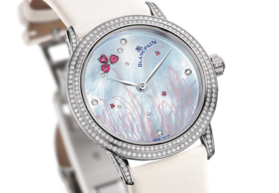 如此詩情畫意的腕表臻品,自然要搭載Blancpain寶珀無可挑剔的機芯技術。此款腕表采用Blancpain寶珀1150自動上鏈超薄機芯。18K白金表殼,直徑34毫米,厚9.5毫米;由鑲嵌28顆寶石的188個部件構成,動力儲存100小時,而機芯厚度只有3.25毫米。這一經典時計締造者在如此小巧的表盤內成功演繹了卓爾不凡的手工彩繪與珠寶鑲嵌工藝。其精致外觀與實用功能并重,使得Blancpain寶珀在女性制表業中獨樹一幟,脫穎而出。