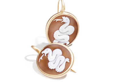 Eva系列珠寶的浮雕設計將充滿力量感的材質和尺寸呈現,是經過無限精細雕琢的藝術品,亦是對高超珠寶手工藝的挑戰。工匠需在尊重貝殼原狀的基礎上,在這些厚度僅為一至兩毫米的原料上發揮純熟的手藝和才氣,雕刻出活靈活現的蛇象;蛟S這便是意大利單詞cameo來源于希臘文kamneim的原因,意指辛勞付出,含義非凡。該系列珠寶通過古老的浮雕藝術糅合迷人款型與色彩,令浮雕成為精致與創造力的代言。這一經過百般考究的蛇形圖案珠寶將成為品味女性在2013年最個性的選擇。