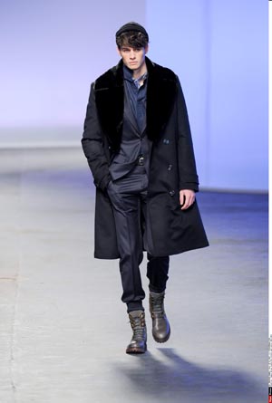 1月8日,英國時裝品牌“Topman Design”2013-2014冬裝秀在倫敦男裝周上舉行。圖為模特展示時裝。