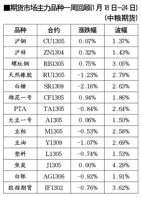 期貨市場主力品種回顧[2012.12.28-2013.1.10]
