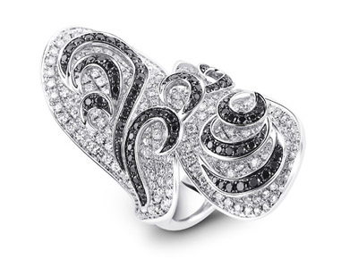 Farfalla翩蝶系列正是對戀人的美好祝愿。簡約破格的設計,融合了清雅簡潔且立體流麗的線條,有別于坊間色彩繽紛的花蝶鉆飾,整套系列以白鉆及黑鉆作為主調,更講究黑白兩鉆的分布及具層次感的配搭:白鉆代表純潔無瑕,黑鉆則予人神秘高貴的感覺。