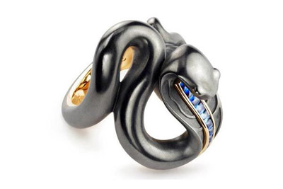 Faberge設計的靈蛇珠寶曾經帶給過我們無限的驚喜和美好回憶。而“蛇”圖案本身也是一個在珠寶領域中被反復使用和重復出現的設計主題。這次Faberge帶來的充滿異國情調的全新靈蛇系列珠寶,其創作靈感原是來自于俄國民間的一個童話故事,故事講述的是一位姑娘愛上并且嫁給了一個可以變成人形的靈蛇童話。而這個充滿戲劇性的高級雕刻珠寶,是由黃金,白金和純銀制成,在靈蛇蜿蜒的身軀上更是附上了藍寶石的華麗鑲嵌,并且畫龍點睛的加入了蛋白石的元素,讓整個珠寶呈現出充滿靈動感的現代氣息。