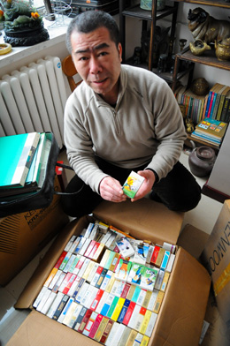 走進高建一位于吉林省長春市的家,他迫不及待地向記者展示他45年來收藏的各種煙盒、撲克、錢幣等。三個書架擺放著顏色各異、國別不同的幾千種煙盒!捌鸪跷也皇翘匾馐占療熀,純是兒時的玩物!备呓ㄒ徽f,“小時候經常用煙盒做成‘煙噴兒’吹著玩,單調的童年生活培養了收集煙盒的興趣!