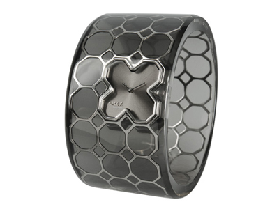 8x被描述為「一款腕表、一個配件和一件珠寶」。它采用亞克力手鐲代替了傳統的表帶部分。手鐲上的八邊形圖案排列網狀的「8」字形狀,也許這個主題是專為中國市場設計的,「8」是中國的傳統幸運數字。偏離正中的表盤設計旨在打破傳統。品牌表示:「這款型號通過實現材料間的完美平衡展現了愛華時的技術與美學的技能。