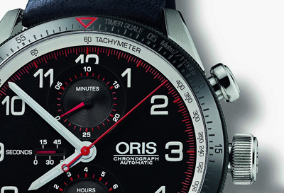 表背雋刻獨特的”領結彎”的圖案,象征著Calobra無法預知的蜿蜒道路。黑色真皮表帶搭配搶眼的紅色打孔,反映了老爺車競賽的豐富多彩歷史。Oris