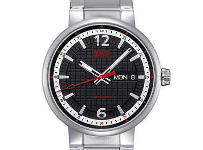 NM主發條,ANACHRON游絲,GLUCYDUR平衡齒輪。精雕細琢的機芯飾以藍色螺釘,日內瓦波紋和刻有MIDO標志。時分秒日期功能。五個不同位置測試認證其精確性。超過38小時動力儲存。