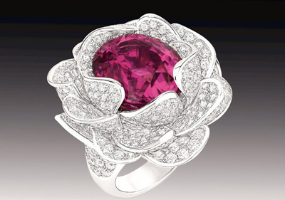 鉆石、多種顏色的藍寶石、橙黃色石榴石、紅碧璽、碧璽、尖晶石、蛋白石及珍珠,在這些珠寶作品上既大膽奔放又精致立體地呈現出洗煉的光芒,間或以充滿戲劇感的高調設計出現,映襯出女性的豐盈之美。